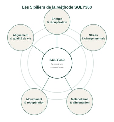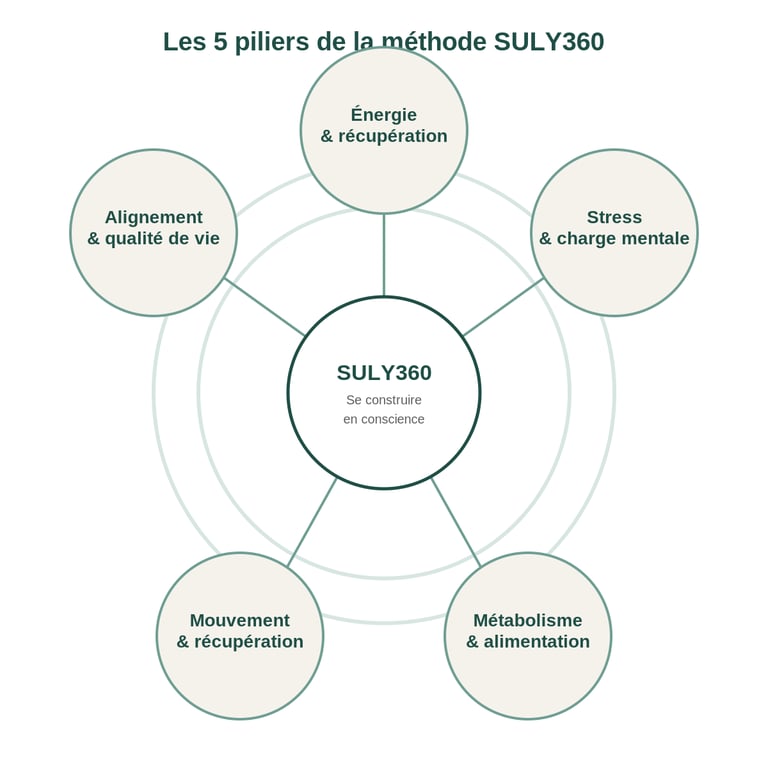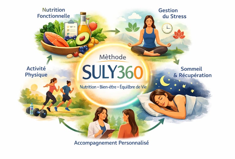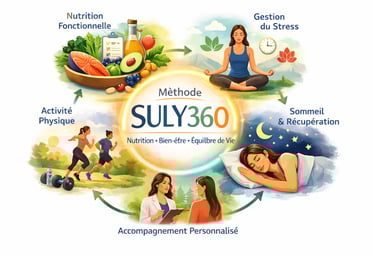 La méthode SULY360 est une approche globale et personnalisée qui combine nutrition fonctionnelle, bien-être et hygiène de vie pour aider les personnes actives à retrouver: énergie, équilibre et vitalité durablement.